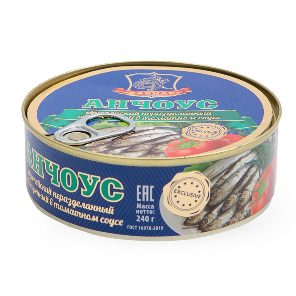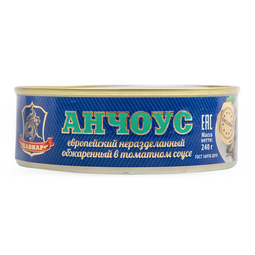 - Cостав: Анчоус европейский неразделанный обжаренный, вода питьевая, томатная паста, сахар, масло подсолнечное, мука пшеничная, лук сушенный, соль пищевая, кислота уксусная, пряности молотые: перец душистый, перец черный, кориандр, гвоздика, лавровый лист.
