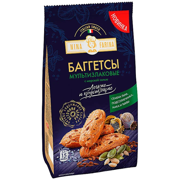 Баггетсы Nina Farina мультизлаковые с морской солью 65 г