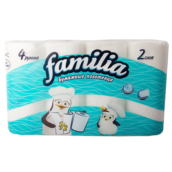 Полотенца бумажные Familia 2-слойные 4 шт: купить в Москве с доставкой - Apeti.ru