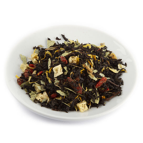 - Cостав: Бленд черного индийского чая, ягод годжи, листьев сенны, кусочков яблока, цветов календулы