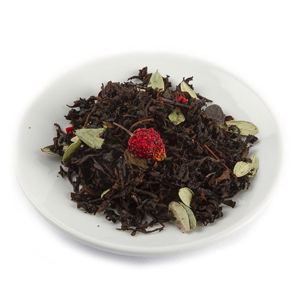 - Cостав: Бленд крупнолистового черного индийского чая, ягод спелой клубники, листьев брусники, сахарных сердечек.