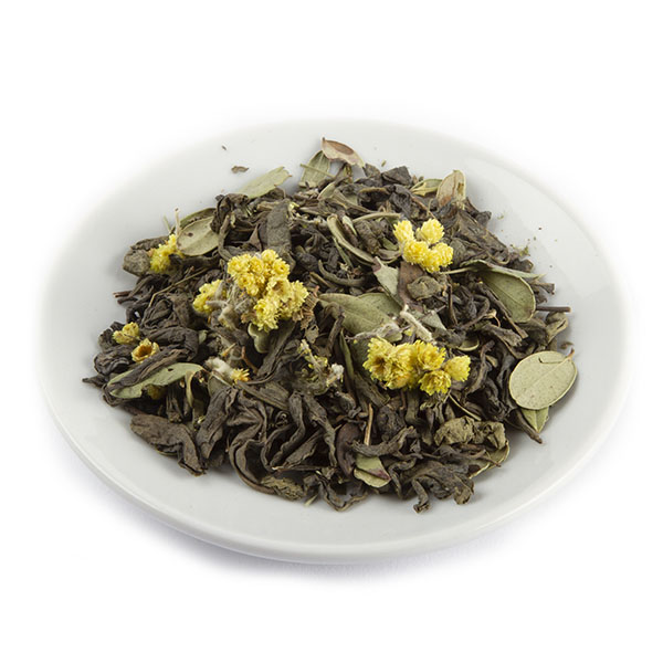 - Cостав: Бленд зеленого китайского чая, цветов бессмертника, чабреца, мяты и листочков брусники
