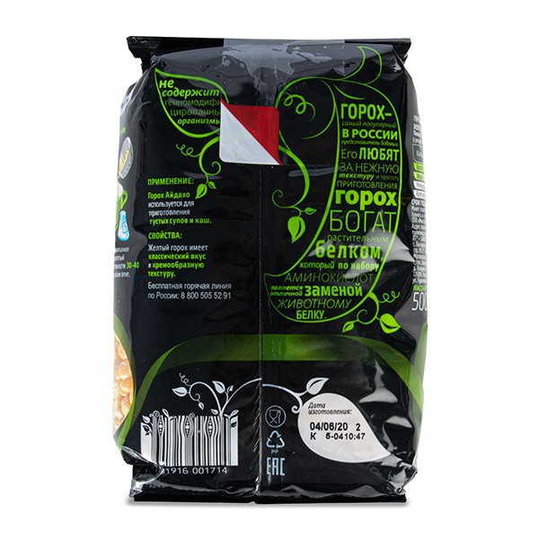 - Cостав: Горох шлифованный желтый колотый.