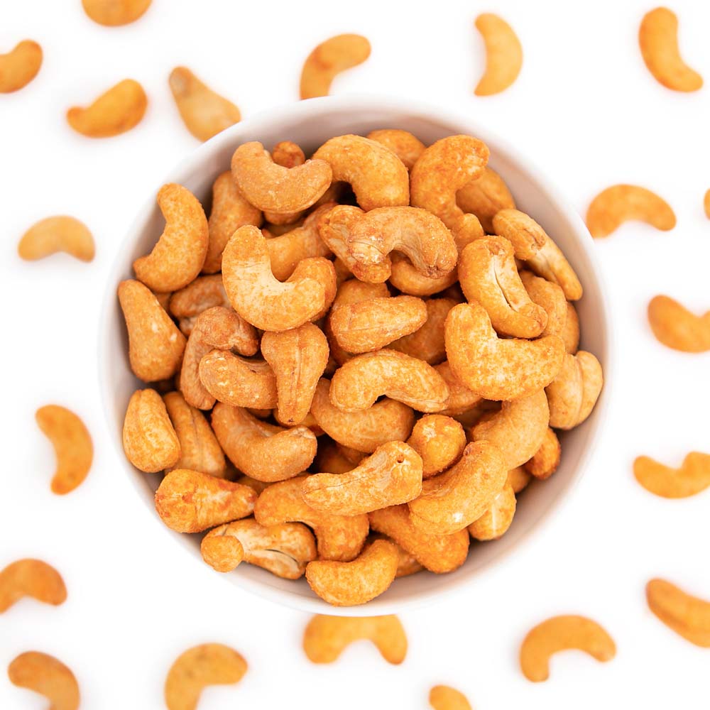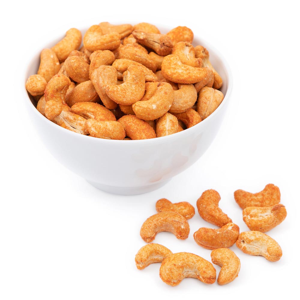 Жареные орехи кешью, щедро приправленные ароматными специями. Благодаря им, и без того вкусный перекус стал еще интереснее. Горстка хрустящих орехов – снэк на все случаи жизни.