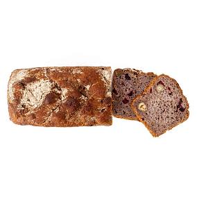 - Cостав: Мука ржаная цельнозернова, мука пшеничная цельнозерновая, мука высший сорт, закваска ржаная, соль, мед, клюква, фундук, грецкий орех, вода.