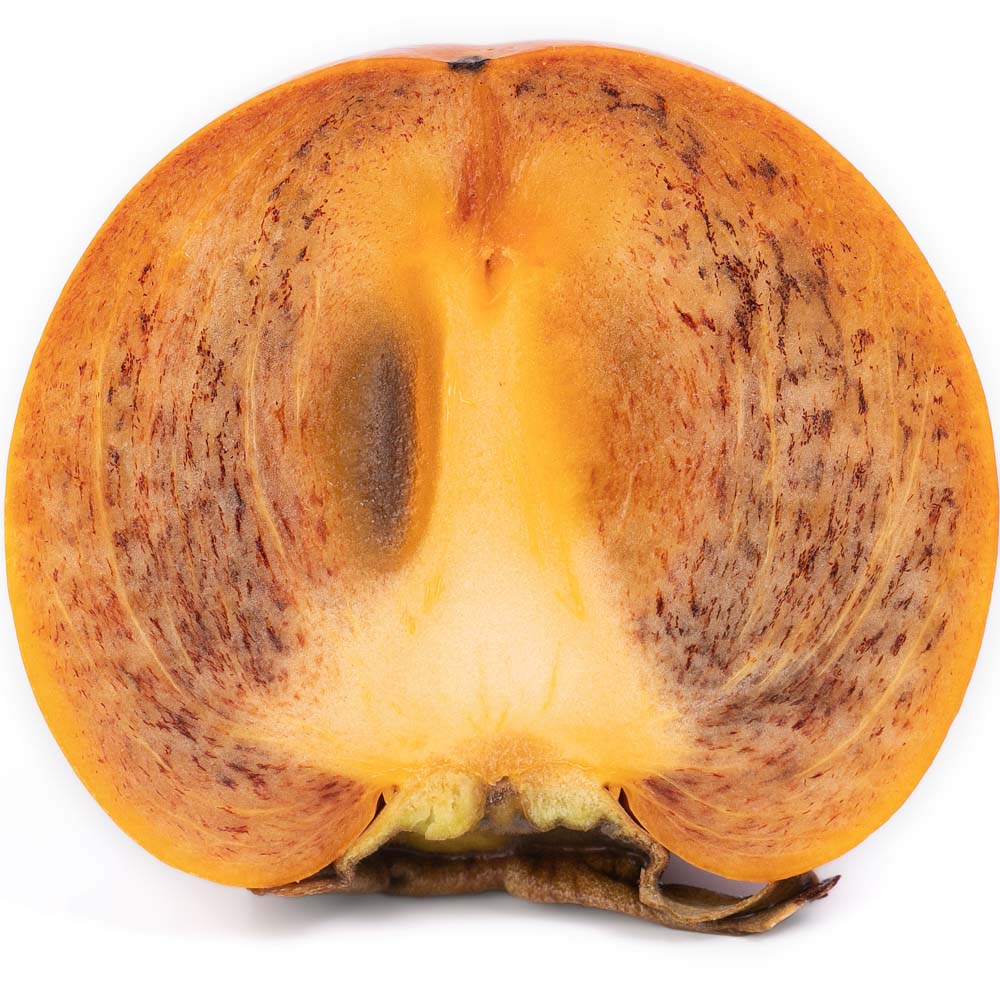 У хурмы сорта Шоколадная характерная мякоть тёмного цвета с крупными косточками. Ягоды очень сладкие и при этом почти не имеют вязкого привкуса даже у недозревших плодов.