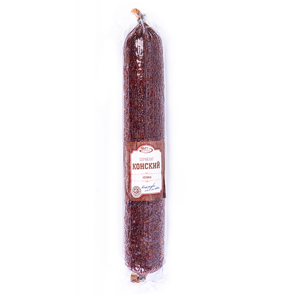 Сервелат Конский от компании Экопрод имеет натуральный состав. Эта колбаса приготовлена по традиционному рецепту с соблюдением всех современных технологий и стандартов качества.