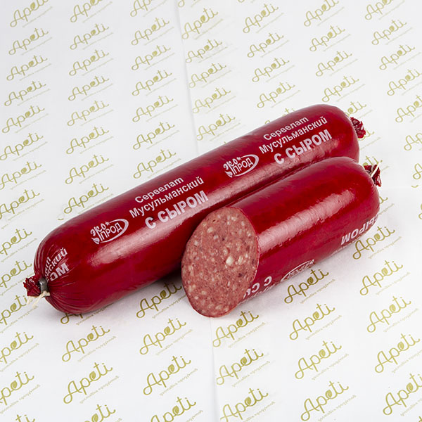 Мусульманский сервелат с сыром изготавливается из свежей говядины с добавлением традиционных восточных пряностей. Насыщенный мясной вкус выгодно дополняет аппетитный аромат копчения и сливочная сладость сыра. Благодаря правильной технологии обработки удается сохранить максимум ценных витаминов и микроэлементов. Мусульманский сервелат относится к халяльным продуктам, дозволенным Советом муфтиев России.