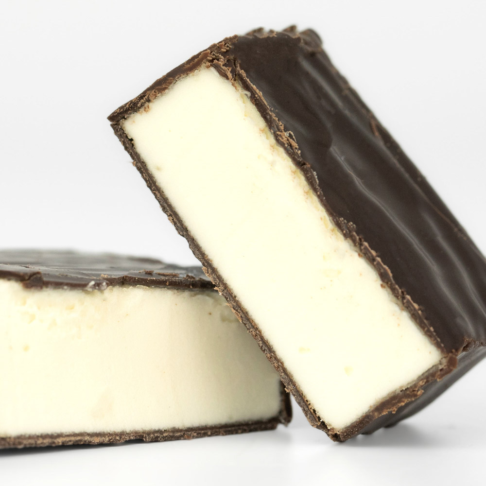 Классическое сочетание гармоничных составляющих: тёмная шоколадная глазурь и сливочное суфле, напоминающее нежнейшую помадку из детства...