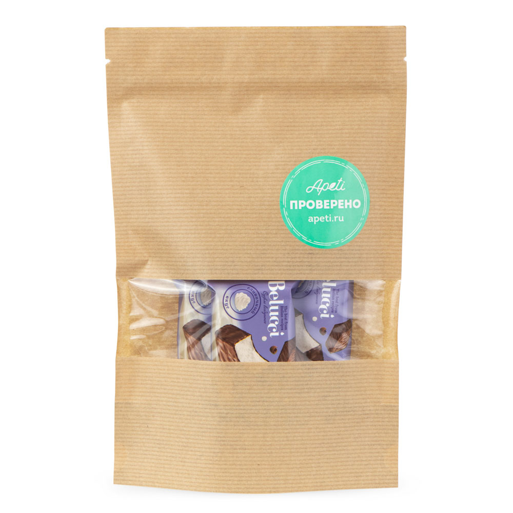 Конфеты упакованы в индивидуальную непрозрачную обёртку, которая легко открывается и не вызовет проблем даже у маленьких детей. При этом обёртка спасает сладости от прямых солнечных лучей. Хранить конфеты Belucci рекомендуем в тёмном прохладном месте.