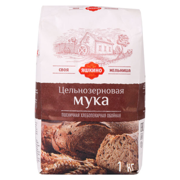Мука пшеничная Яшкино цельнозерновая 1 кг