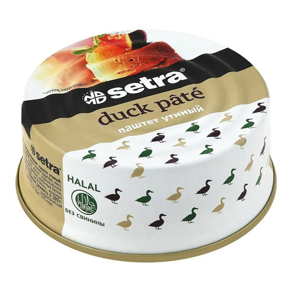 Чтобы сытно позавтракать или быстро и вкусно перекусить, используйте утиный паштет «Setra». Он изготовлен из настоящего мяса утки и курицы с добавлением букета душистых и пряных специй. В сбалансированном отменном вкусе хорошо ощутимы ноты натуральной птицы и тонкая пикантность приправ. Консистенция однородная и очень нежная, а текстура – практически гладкая.