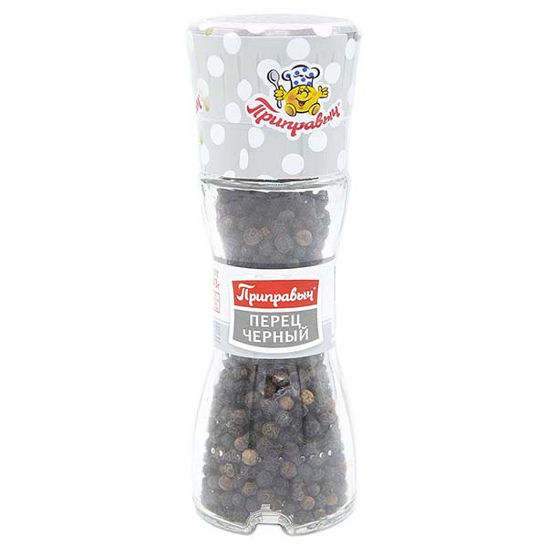 Приправа «Черный перец» с мельницей ТМ «Приправыч» – это отборная линейка специй, выращенных на лучших плантациях мира. Готовое сырье прошло несколько этапов обработки, находится в удобной и компактной мельнице. Такая форма упаковки позволяет быстро и легко перемолоть нужное количество черного перца, приправив блюдо по вкусу.