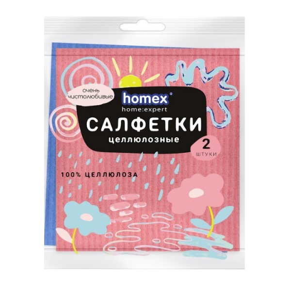 Салфетки целлюлозные HOMEX 2 шт 15x15 Очень Чистолюбивые : купить в Москве с доставкой - Apeti.ru