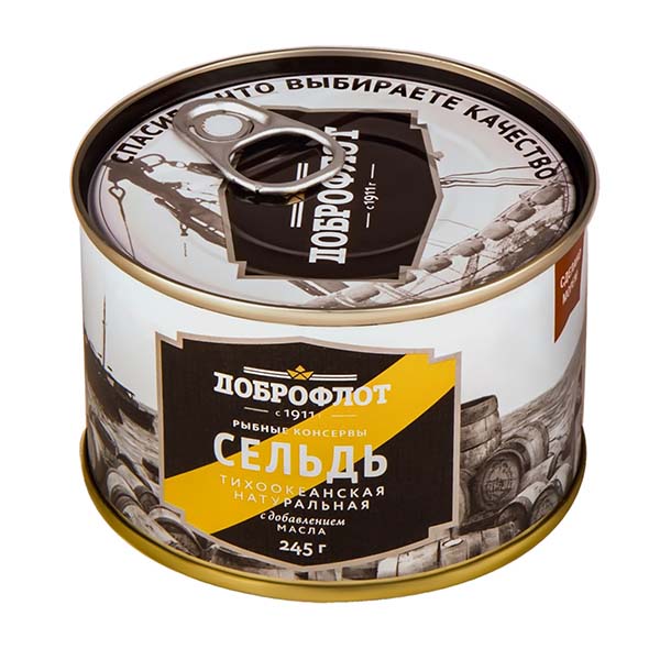 Сельдь тихоокеанская Доброфлот натуральная с добавлением масла 245 г: купить в Москве с доставкой - Apeti.ru