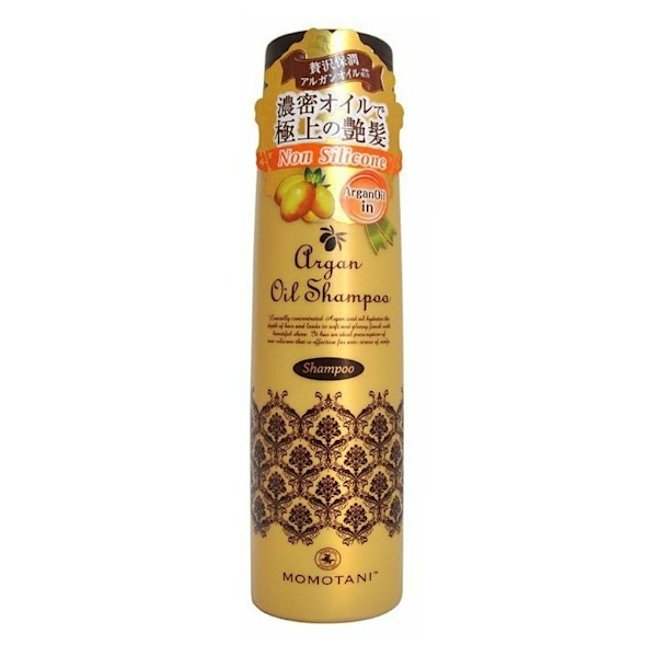 Японский шампунь «Momotani» имеет в составе масло арганы, но не содержит силиконов. Марокканское аргановое масло помогает удерживать в структуре влагу, склеивает отделившиеся чешуйки на секущихся кончиках, смягчает, обеспечивает очистку кожных покровов и волос, убирает любые посторонние запахи, гарантирует восстановление при повреждениях и придаёт блеск.