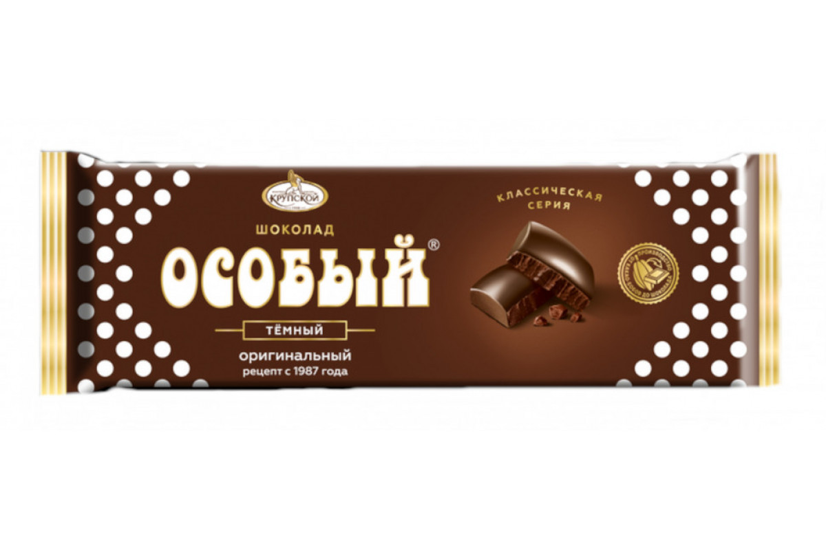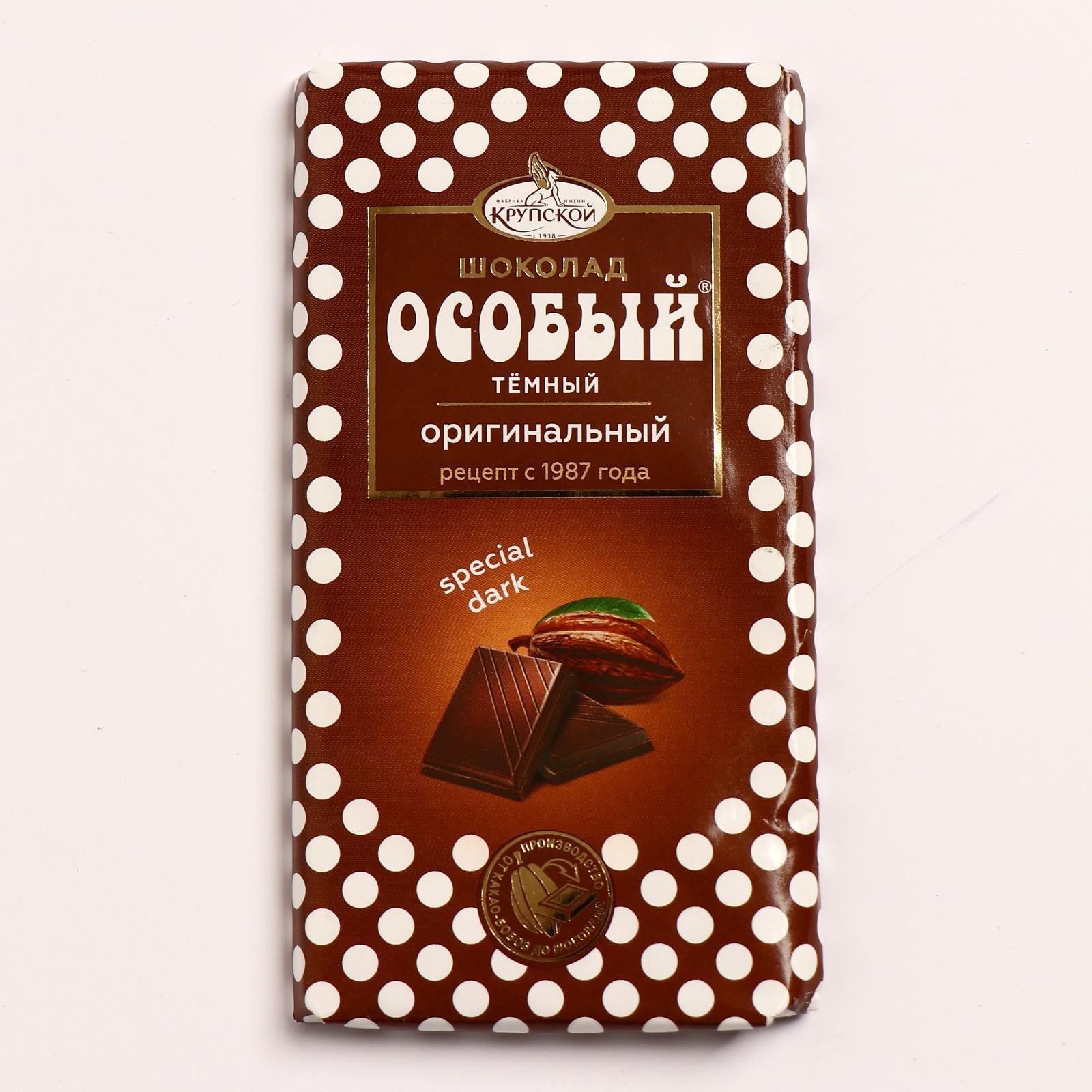 Шоколад тёмный «Особый» от кондитерской фабрики им. Н. К. Крупской — это отличный выбор для большой компании.
