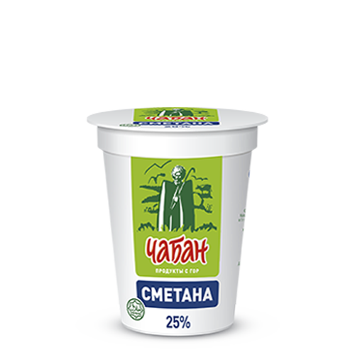 Сметана Чабан 25% – густой молочный продукт, в составе которого находятся только натуральные ингредиенты: нормализованные сливки и заквасочные культуры. По вкусу – это настоящая деревенская сметана, без каких бы то ни было привкусов.