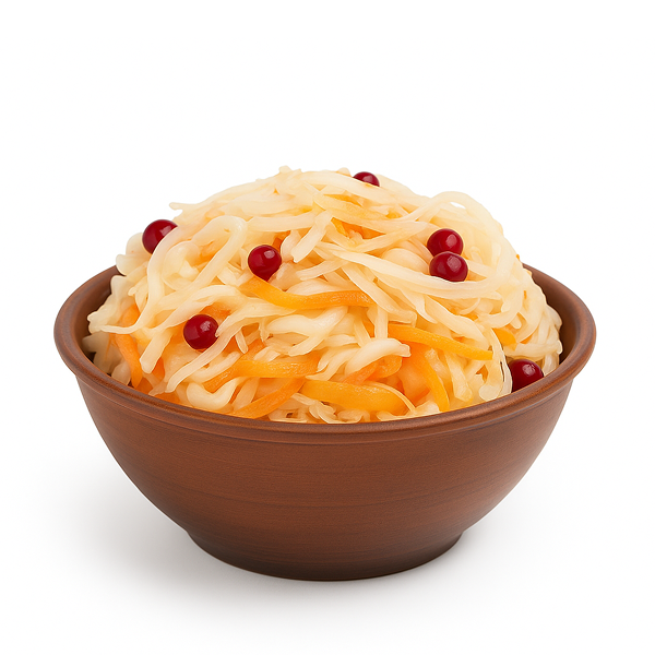 Капуста с клюквой — это традиционное соленье с ярким вкусом и природной пользой. Хрустящая, ароматная капуста идеально сочетается с лёгкой кислинкой и ягодной свежестью клюквы, создавая гармоничный вкус с приятной сладко-кислой ноткой. Такое соленье отлично подходит в качестве самостоятельной закуски, гарнира к мясным и картофельным блюдам или дополнения к горячему. Капуста с клюквой придаёт свежесть и аппетитность любому застолью, а также прекрасно дополняет блюда русской и восточноевропейской кухни. Капуста готовится из свежих, отборных овощей, которые проходят проверку на нитраты. Мы используем только безопасные и качественные продукты, чтобы сохранить пользу и натуральный вкус.- Вес: 1 кг