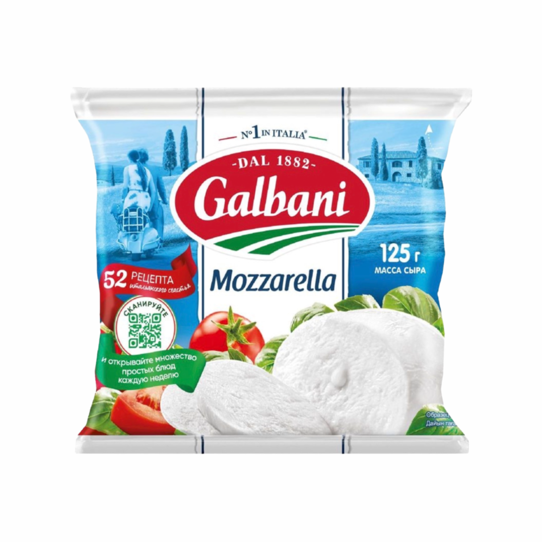 Мягкий сыр моцарелла от бренда Galbani - натуральный продукт с нежным молочным вкусом. Производится из молочной сыворотки: ее нагревают до образования пластичной сырной массы, которой затем придают форму шара. В составе сыра нет красителей, ароматизаторов и усилителей вкуса. Моцарелла отлично сочетается со свежими овощами. Ее можно использовать для салата капрезе, а также для приготовления горячих блюд и закусок: гриль-сэндвича с соусом песто, зеленью и свежими томатами, итальянского омлета фриттата, пиццы.