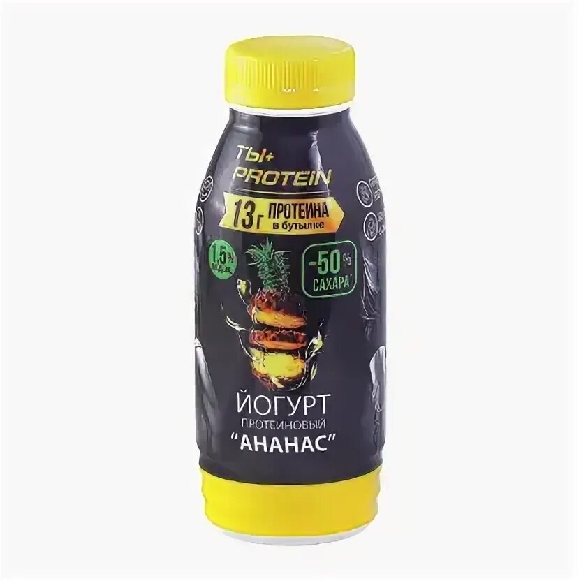 Йогурт питьевой Ананас ПРОТЕИНОВЫЙ РАЭ 1,5% 290г бутылка